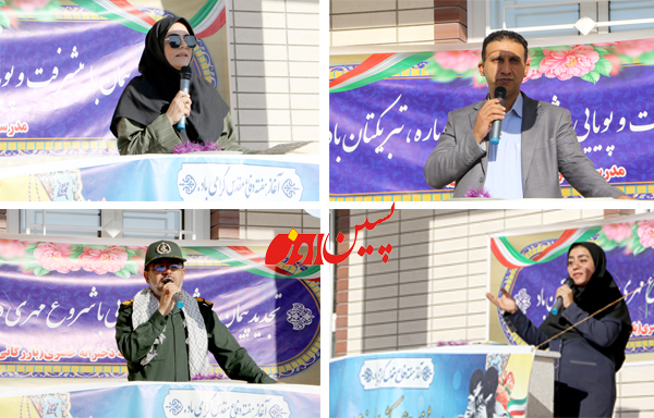 این آیین با حضور دانش‌آموزان، اولیا، امام جمعه و جمعی از مسئولان شهرستان برگزار شد. در مراسم، عیسی میری مدیر آموزش و پرورش، فروغ هاشمی فرماندار و سرهنگ سید حسین رضوی فرمانده سپاه پاسداران سخنرانی کردند. سخنرانان ضمن گرامیداشت هفته دفاع مقدس، بر اهمیت علم و دانش به عنوان ابزار توسعه و پیشرفت تأکید نمودند.